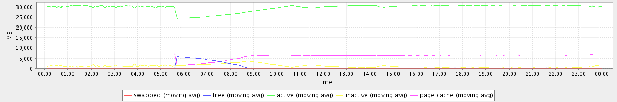 avg(swapped) = 0.25 avg(free) = 581.82 avg(active) = 29705.46 avg(inactive) = 1173.18 avg(page cache) = 6255.78