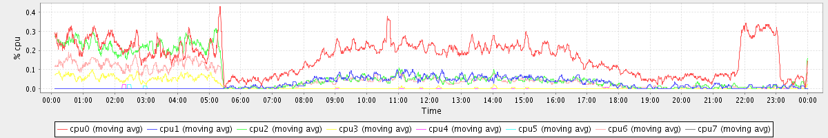avg(cpu0) = 0.17 avg(cpu1) = 0.03 avg(cpu2) = 0.07 avg(cpu3) = 0.01 avg(cpu4) = 0.00 avg(cpu5) = 0.00 avg(cpu6) = 0.05 avg(cpu7) = 0.00