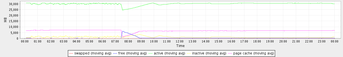 avg(swapped) = 0.25 avg(free) = 313.31 avg(active) = 30013.08 avg(inactive) = 1102.97 avg(page cache) = 6543.41