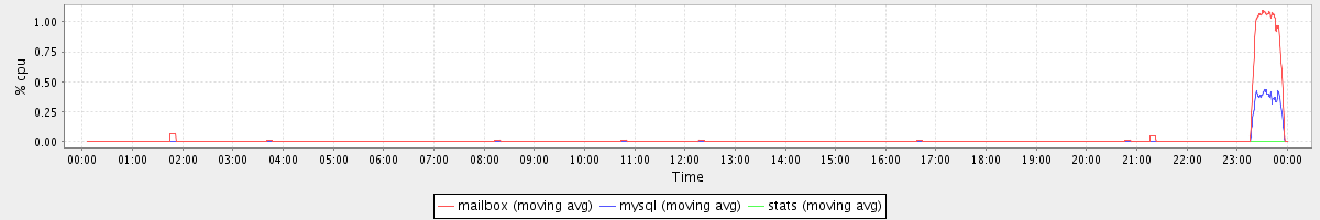 avg(mailbox) = 0.03 avg(mysql) = 0.01 avg(stats) = 0.00