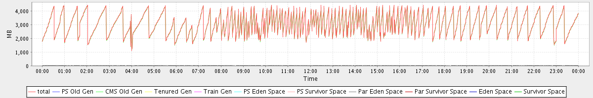 avg(total) = 3085.71 avg(PS Old Gen) = 0.00 avg(CMS Old Gen) = 3065.30 avg(Tenured Gen) = 0.00 avg(Train Gen) = 0.00 avg(PS Eden Space) = 0.00 avg(PS Survivor Space) = 0.00 avg(Par Eden Space) = 20.41 avg(Par Survivor Space) = 0.00 avg(Eden Space) = 0.00 avg(Survivor Space) = 0.00