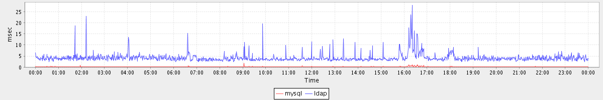 avg(mysql) = 0.20 avg(ldap) = 4.22