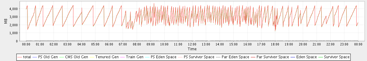 avg(total) = 3069.98 avg(PS Old Gen) = 0.00 avg(CMS Old Gen) = 3049.21 avg(Tenured Gen) = 0.00 avg(Train Gen) = 0.00 avg(PS Eden Space) = 0.00 avg(PS Survivor Space) = 0.00 avg(Par Eden Space) = 20.77 avg(Par Survivor Space) = 0.00 avg(Eden Space) = 0.00 avg(Survivor Space) = 0.00