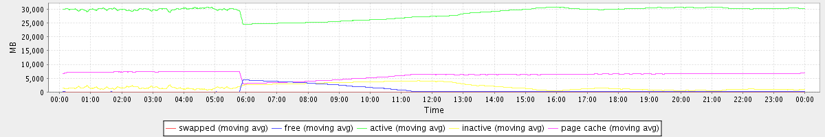 avg(swapped) = 0.25 avg(free) = 716.27 avg(active) = 28913.50 avg(inactive) = 1868.14 avg(page cache) = 6219.51