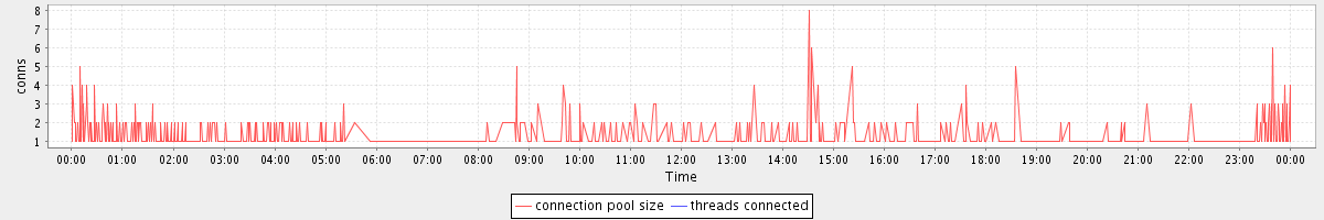 avg(connection pool size) = 0.71 avg(threads connected) = 0.00