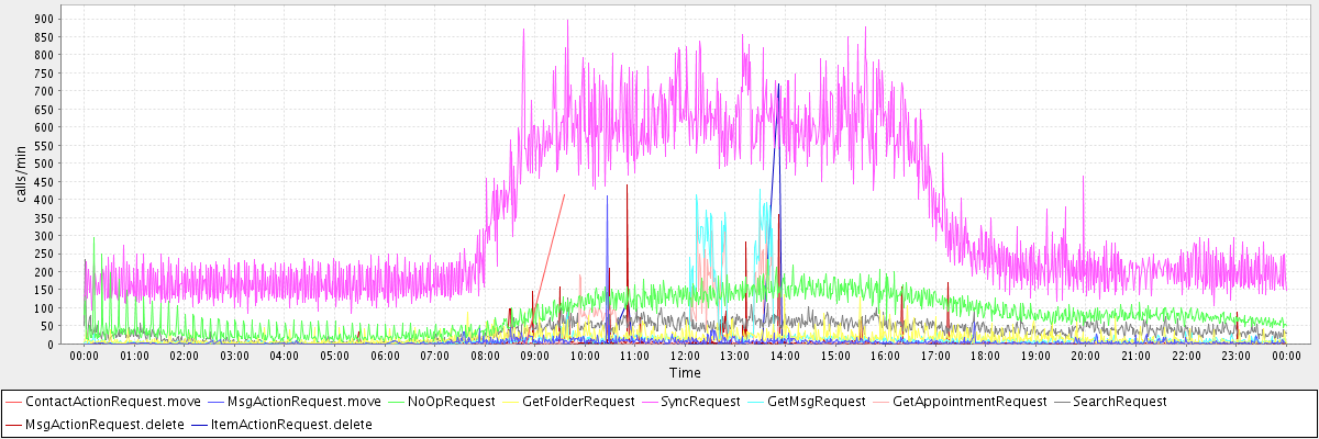 max(ContactActionRequest.move) = 413.00 max(MsgActionRequest.move) = 411.00 max(NoOpRequest) = 295.00 max(GetFolderRequest) = 135.00 max(SyncRequest) = 895.00 max(GetMsgRequest) = 427.00 max(GetAppointmentRequest) = 392.00 max(SearchRequest) = 233.00 max(MsgActionRequest.delete) = 440.00 max(ItemActionRequest.delete) = 720.00