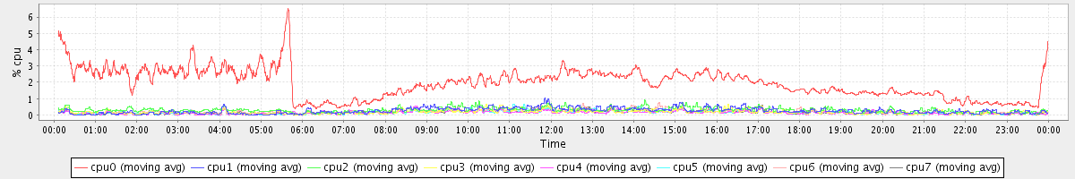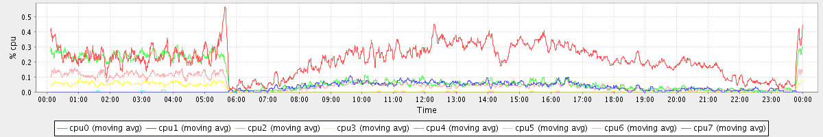 avg(cpu0) = 0.22 avg(cpu1) = 0.03 avg(cpu2) = 0.09 avg(cpu3) = 0.01 avg(cpu4) = 0.00 avg(cpu5) = 0.00 avg(cpu6) = 0.05 avg(cpu7) = 0.00