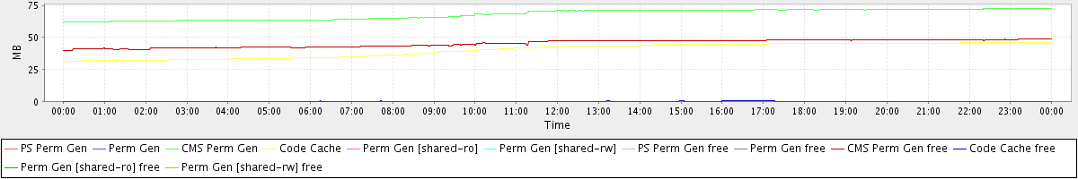 avg(PS Perm Gen) = 0.00 avg(Perm Gen) = 0.00 avg(CMS Perm Gen) = 68.15 avg(Code Cache) = 40.14 avg(Perm Gen [shared-ro]) = 0.00 avg(Perm Gen [shared-rw]) = 0.00 avg(PS Perm Gen free) = 0.00 avg(Perm Gen free) = 0.00 avg(CMS Perm Gen free) = 45.41 avg(Code Cache free) = 0.12 avg(Perm Gen [shared-ro] free) = 0.00 avg(Perm Gen [shared-rw] free) = 0.00
