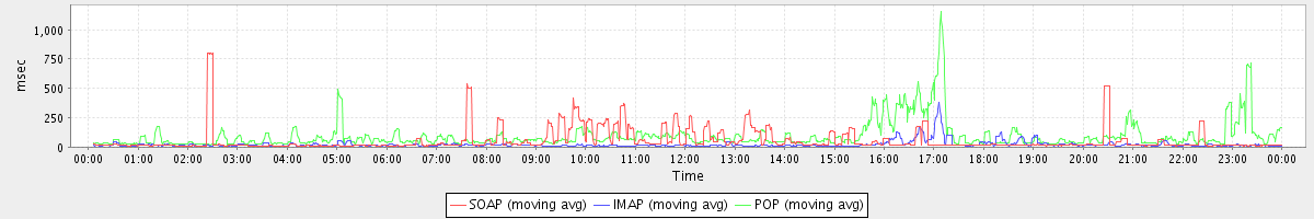 Host zm04.stanford.edu: Mailboxd: Response Time by Client Protocol