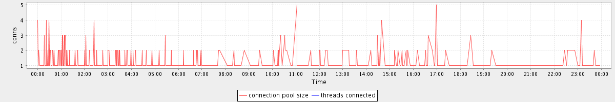 avg(connection pool size) = 0.57 avg(threads connected) = 0.00