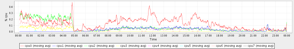 avg(cpu0) = 0.13 avg(cpu1) = 0.03 avg(cpu2) = 0.07 avg(cpu3) = 0.01 avg(cpu4) = 0.00 avg(cpu5) = 0.00 avg(cpu6) = 0.04 avg(cpu7) = 0.00