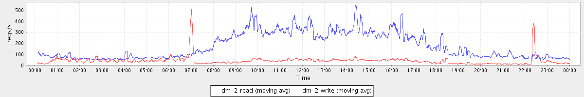avg(dm-2 read) = 39.79 avg(dm-2 write) = 172.62