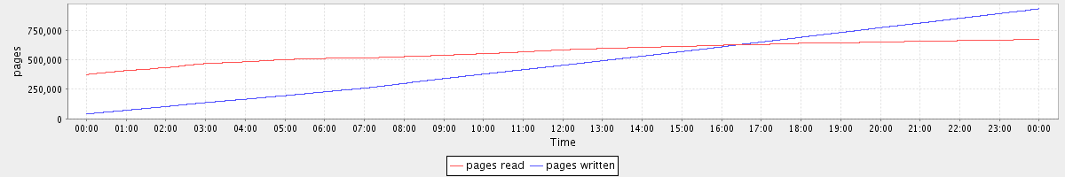 avg(pages read) = 566855.19 avg(pages written) = 464036.31