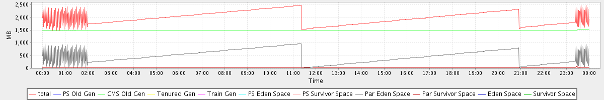 avg(total) = 1977.55 avg(PS Old Gen) = 0.00 avg(CMS Old Gen) = 1493.96 avg(Tenured Gen) = 0.00 avg(Train Gen) = 0.00 avg(PS Eden Space) = 0.00 avg(PS Survivor Space) = 0.00 avg(Par Eden Space) = 458.14 avg(Par Survivor Space) = 25.46 avg(Eden Space) = 0.00 avg(Survivor Space) = 0.00