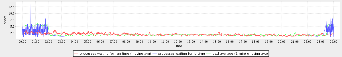 avg(processes waiting for run time) = 2.03 avg(processes waiting for io time) = 0.40 avg(load average (1 min)) = 2.20