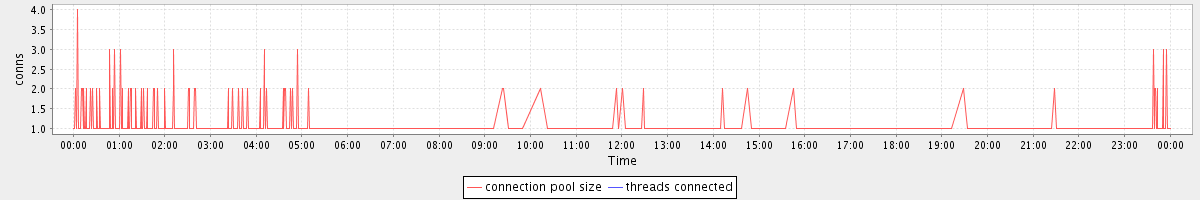 avg(connection pool size) = 0.36 avg(threads connected) = 0.00
