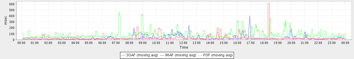 Host zm08.stanford.edu: Mailboxd: Response Time by Client Protocol