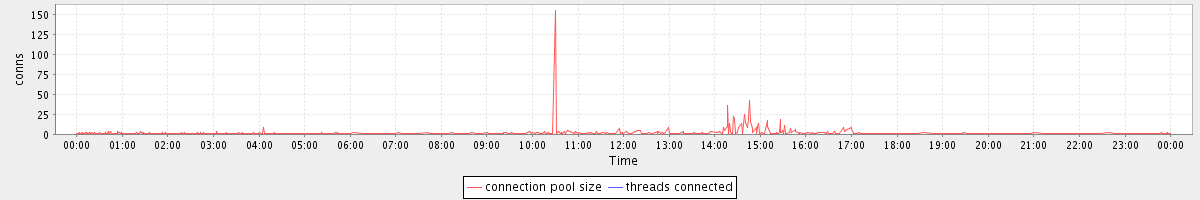 avg(connection pool size) = 0.97 avg(threads connected) = 0.00