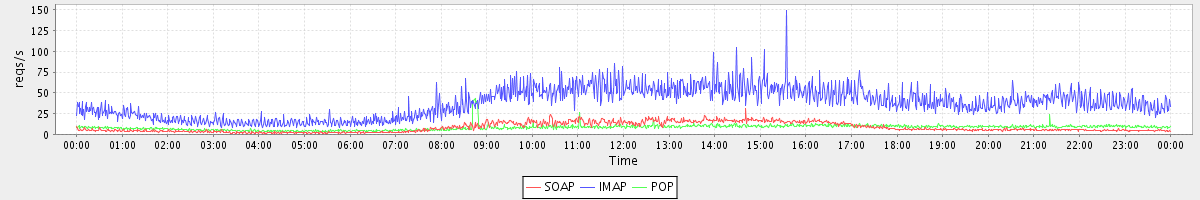 Host zm02.stanford.edu: Mailboxd: Request Rate by Client Protocol
