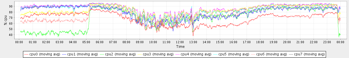 avg(cpu0) = 68.31 avg(cpu1) = 79.74 avg(cpu2) = 69.35 avg(cpu3) = 82.94 avg(cpu4) = 87.04 avg(cpu5) = 85.38 avg(cpu6) = 75.71 avg(cpu7) = 84.88