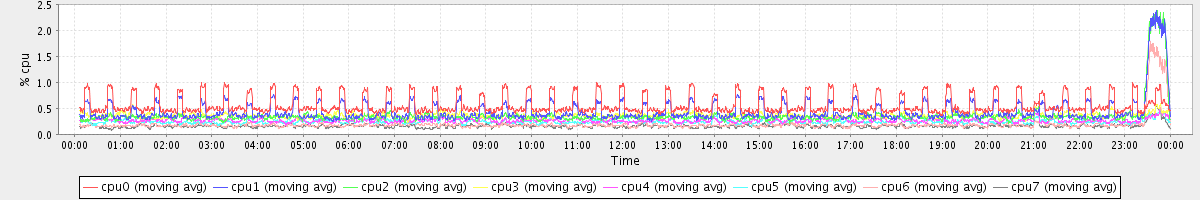 avg(cpu0) = 0.57 avg(cpu1) = 0.45 avg(cpu2) = 0.36 avg(cpu3) = 0.37 avg(cpu4) = 0.27 avg(cpu5) = 0.25 avg(cpu6) = 0.20 avg(cpu7) = 0.16