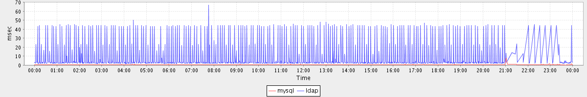 avg(mysql) = 0.24 avg(ldap) = 8.22