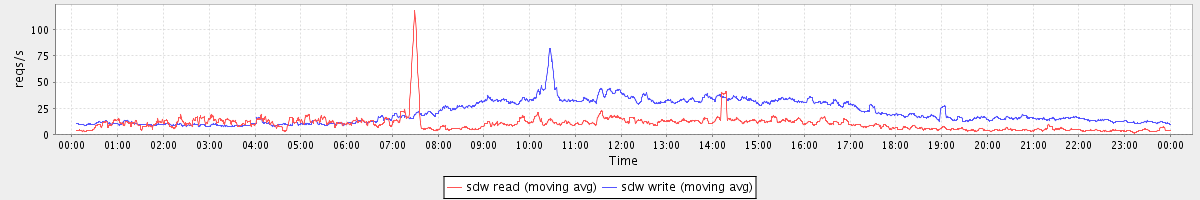 avg(sda1 read) = 26.37 avg(sda1 write) = 49.56