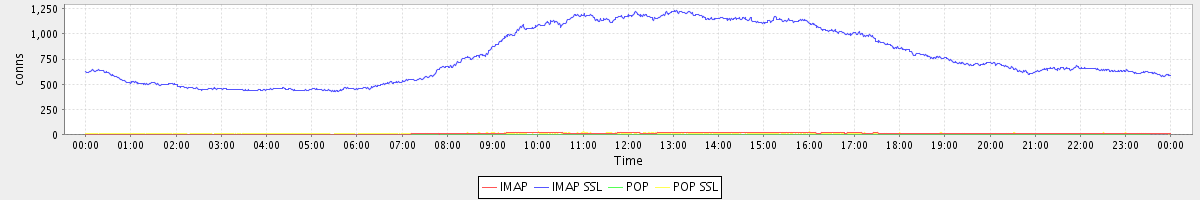 Host zm07.stanford.edu: Mailboxd: Active Connections by Client Protocol