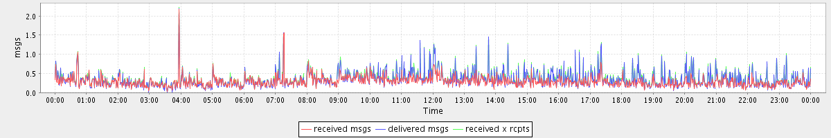 avg(received msgs) = 0.29 avg(delivered msgs) = 0.34 avg(received x rcpts) = 0.36