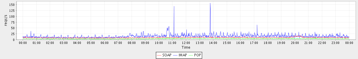 Host zm04.stanford.edu: Mailboxd: Request Rate by Client Protocol