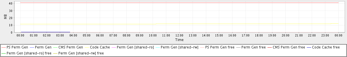avg(PS Perm Gen) = 41.07 avg(Perm Gen) = 0.00 avg(CMS Perm Gen) = 0.00 avg(Code Cache) = 11.68 avg(Perm Gen [shared-ro]) = 0.00 avg(Perm Gen [shared-rw]) = 0.00 avg(PS Perm Gen free) = 0.12 avg(Perm Gen free) = 0.00 avg(CMS Perm Gen free) = 0.00 avg(Code Cache free) = 0.07 avg(Perm Gen [shared-ro] free) = 0.00 avg(Perm Gen [shared-rw] free) = 0.00