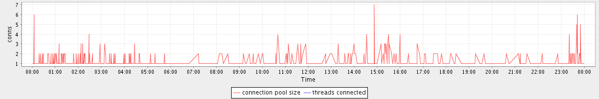 avg(connection pool size) = 0.61 avg(threads connected) = 0.00