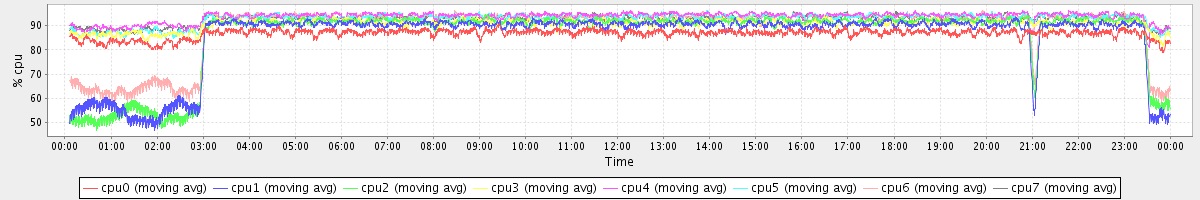 avg(cpu0) = 86.81 avg(cpu1) = 85.26 avg(cpu2) = 86.15 avg(cpu3) = 90.78 avg(cpu4) = 93.71 avg(cpu5) = 92.89 avg(cpu6) = 89.32 avg(cpu7) = 92.69