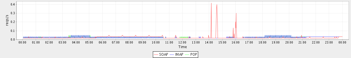 Host zm02-loadtest.stanford.edu: Mailboxd: Request Rate by Client Protocol