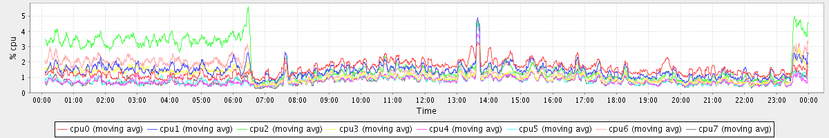 avg(cpu0) = 0.09 avg(cpu1) = 0.08 avg(cpu2) = 0.09 avg(cpu3) = 0.02 avg(cpu4) = 0.00 avg(cpu5) = 0.00 avg(cpu6) = 0.06 avg(cpu7) = 0.00