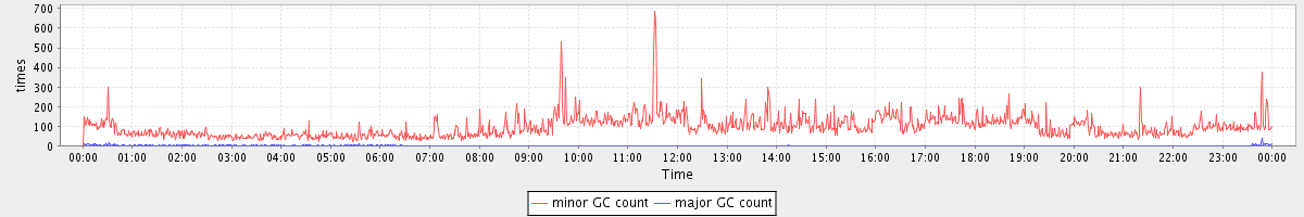 avg(minor GC count) = 95.73 avg(major GC count) = 0.79