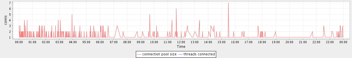 avg(connection pool size) = 0.64 avg(threads connected) = 0.00