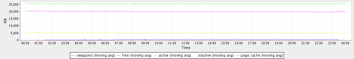 avg(swapped) = 0.25 avg(free) = 325.65 avg(active) = 25712.83 avg(inactive) = 5137.65 avg(page cache) = 20040.03