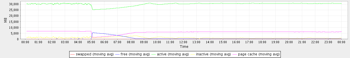 avg(swapped) = 0.25 avg(free) = 569.53 avg(active) = 29869.15 avg(inactive) = 1057.06 avg(page cache) = 5783.55