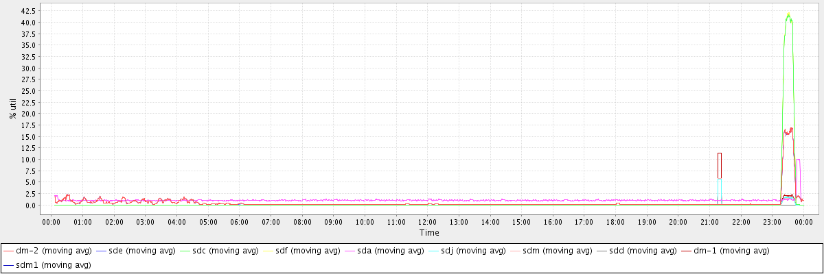 avg(dm-2) = 0.55 avg(sde) = 0.54 avg(sdc) = 0.62 avg(sdf) = 0.62 avg(sda) = 1.08 avg(sdj) = 0.05 avg(sdm) = 0.05 avg(sdd) = 0.00 avg(dm-1) = 0.09 avg(sdm1) = 0.00