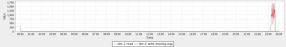 avg(dm-1 read) = 0.40 avg(dm-1 write) = 25.44