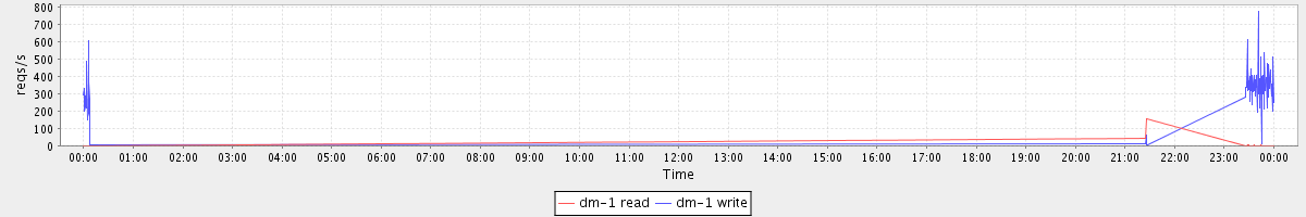 avg(dm-1 read) = 0.10 avg(dm-1 write) = 9.88