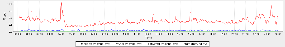 avg(mailbox) = 3.74 avg(mysql) = 0.41 avg(convertd) = 0.00 avg(stats) = 0.00
