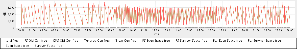 avg(total free) = 1907.86 avg(PS Old Gen free) = 0.00 avg(CMS Old Gen free) = 1887.08 avg(Tenured Gen free) = 0.00 avg(Train Gen free) = 0.00 avg(PS Eden Space free) = 0.00 avg(PS Survivor Space free) = 0.00 avg(Par Eden Space free) = 20.72 avg(Par Survivor Space free) = 0.06 avg(Eden Space free) = 0.00 avg(Survivor Space free) = 0.00