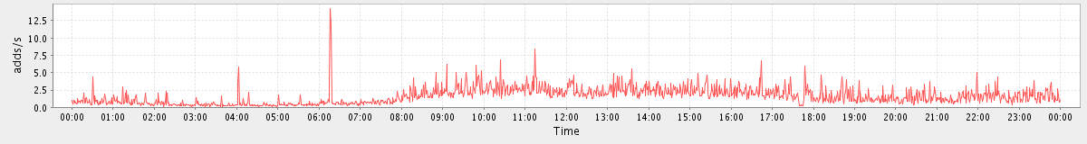 Host zm01.stanford.edu: Mailboxd: Mailbox Add Rate (Delivery Rate)