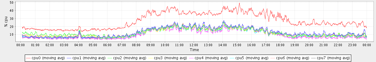 avg(cpu0) = 1.89 avg(cpu1) = 0.25 avg(cpu2) = 0.28 avg(cpu3) = 0.19 avg(cpu4) = 0.13 avg(cpu5) = 0.16 avg(cpu6) = 0.22 avg(cpu7) = 0.16