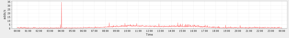 max(SearchConvRequest) = 72.00 max(MsgActionRequest.move) = 490.00 max(NoOpRequest) = 279.00 max(GetFolderRequest) = 120.00 max(SyncRequest) = 3067.00 max(GetMsgRequest) = 747.00 max(GetAppointmentRequest) = 948.00 max(SearchRequest) = 171.00 max(GetContactsRequest) = 588.00 max(MsgActionRequest.delete) = 1180.00