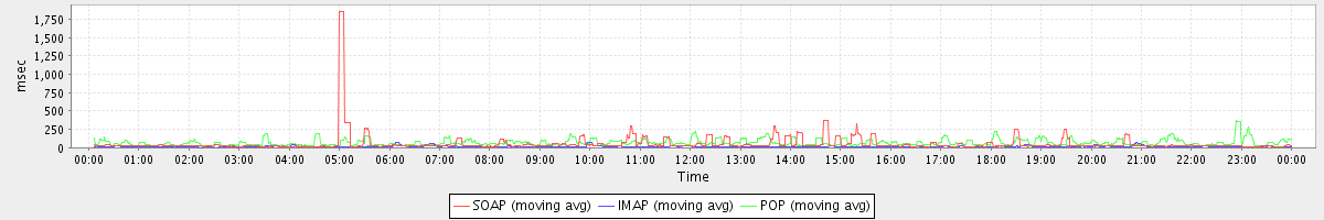 Host zm05.stanford.edu: Mailboxd: Response Time by Client Protocol