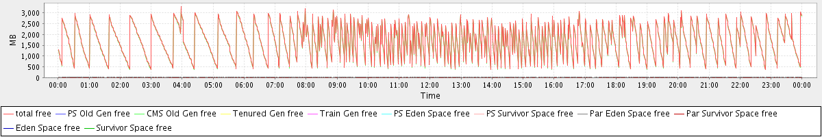 avg(total free) = 1712.22 avg(PS Old Gen free) = 0.00 avg(CMS Old Gen free) = 1690.67 avg(Tenured Gen free) = 0.00 avg(Train Gen free) = 0.00 avg(PS Eden Space free) = 0.00 avg(PS Survivor Space free) = 0.00 avg(Par Eden Space free) = 21.49 avg(Par Survivor Space free) = 0.06 avg(Eden Space free) = 0.00 avg(Survivor Space free) = 0.00