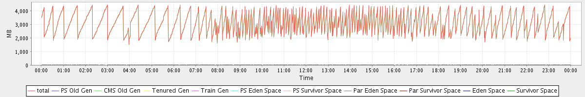 avg(total) = 3113.72 avg(PS Old Gen) = 0.00 avg(CMS Old Gen) = 3093.77 avg(Tenured Gen) = 0.00 avg(Train Gen) = 0.00 avg(PS Eden Space) = 0.00 avg(PS Survivor Space) = 0.00 avg(Par Eden Space) = 19.95 avg(Par Survivor Space) = 0.00 avg(Eden Space) = 0.00 avg(Survivor Space) = 0.00